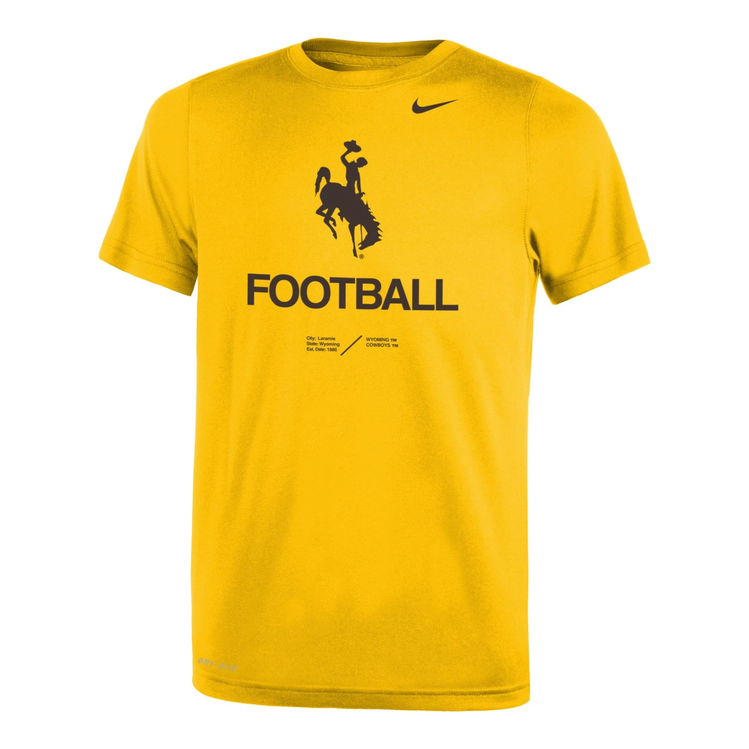 Nike Wyoming Cowboys Performance Youth Football S/S Tee – Gold