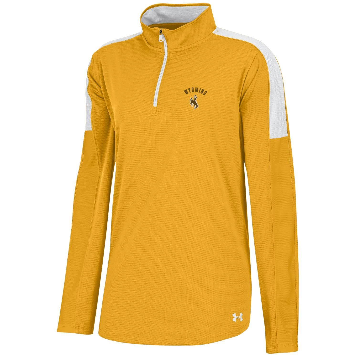 UA Wyoming Cowboys Women’s Mesh ¼ Zip Jacket – Gold/White