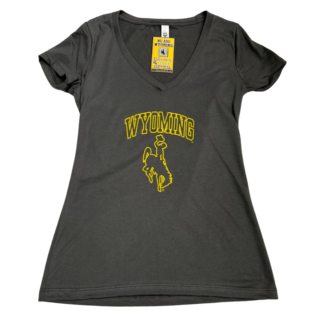 Wyoming Cowboys Women’s S/S Vneck Tee – Dark Grey